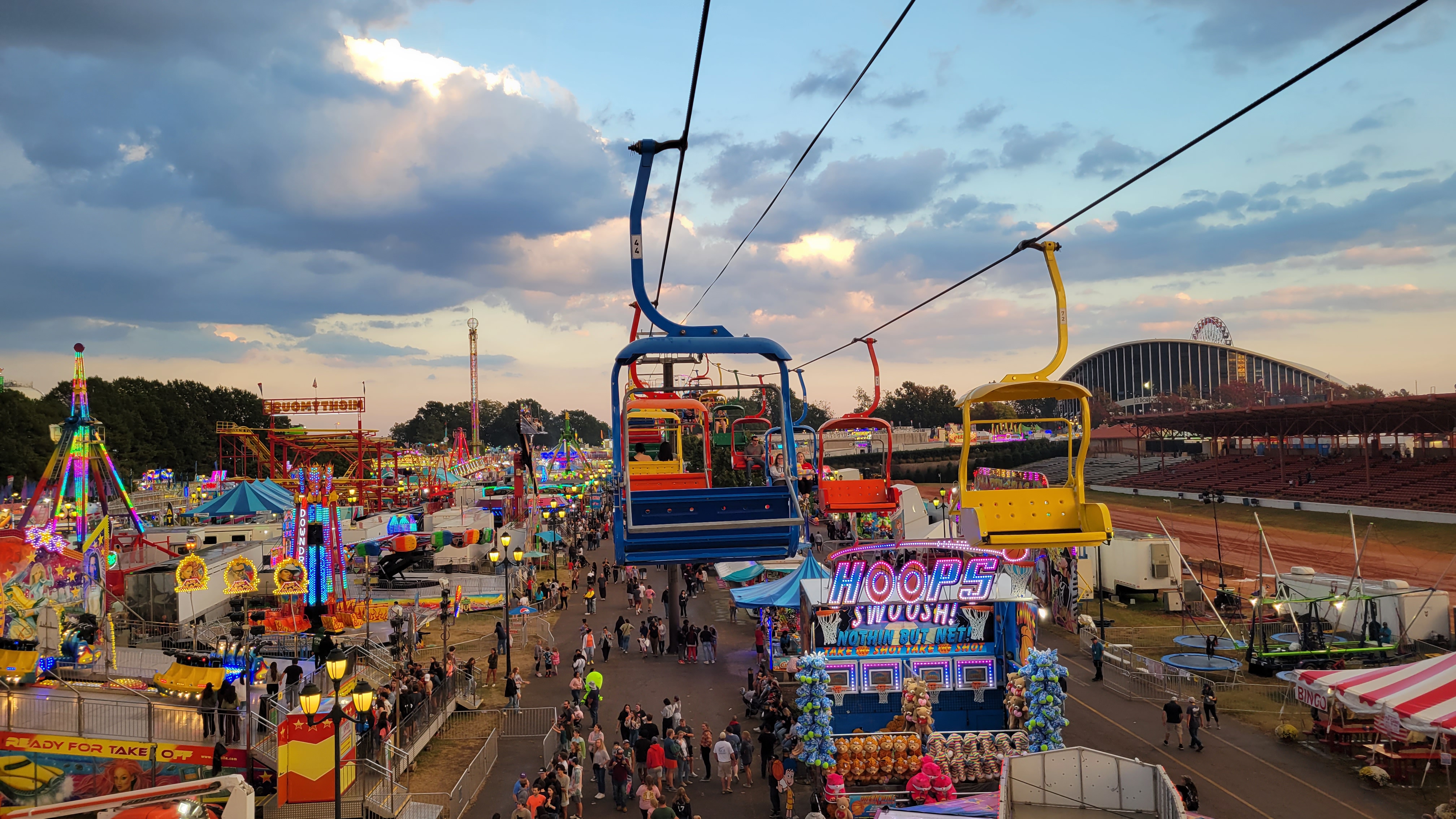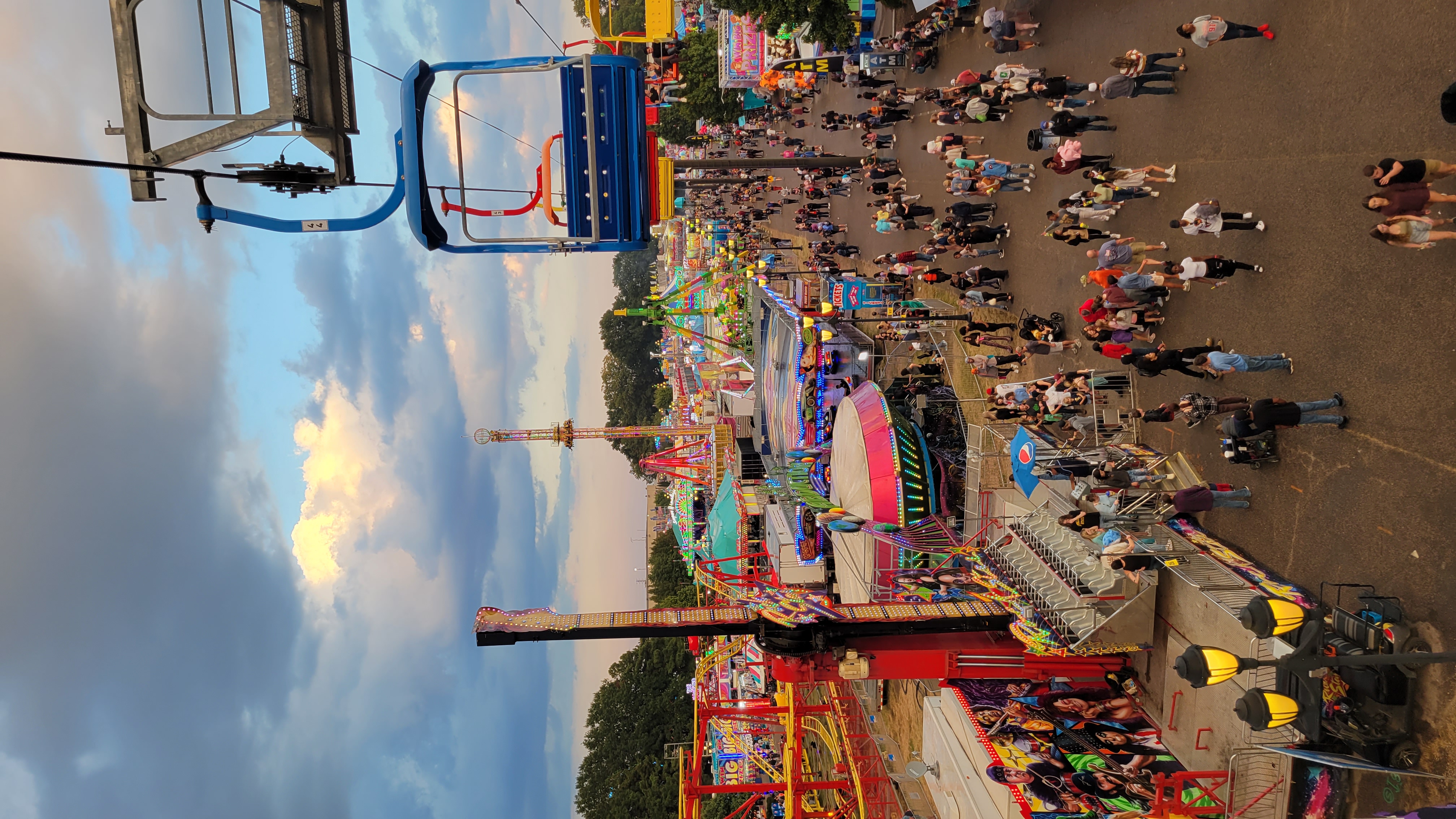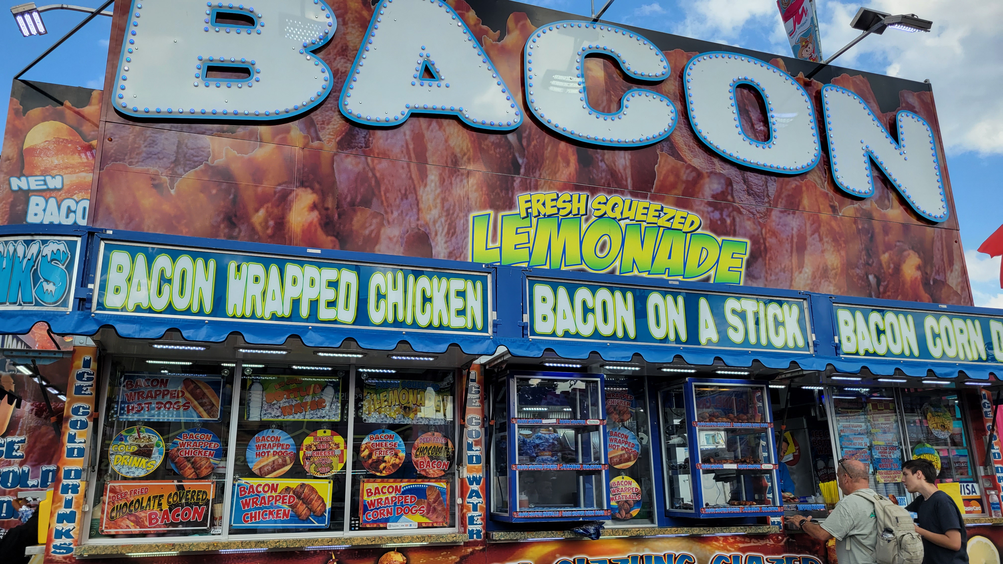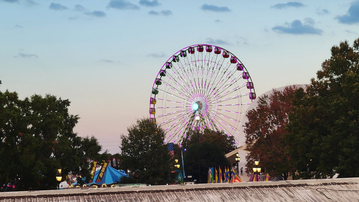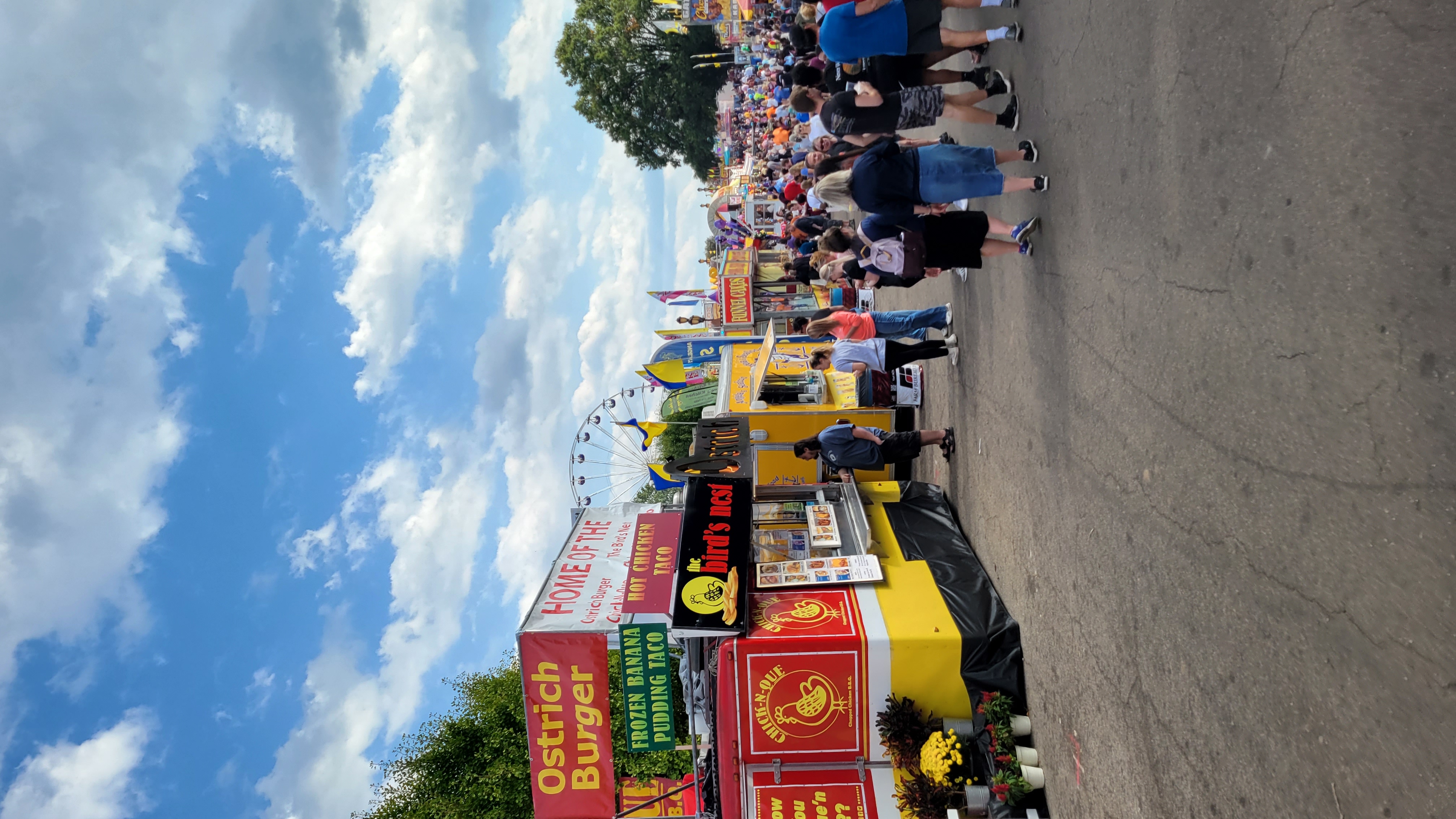 Pretezel bacon cheese corn dog! Pretzel stop #1. Ostrich Burger. Bacon everything! Himalaya! Mouse Coaster. Steve's Dog House Winning Pumpkins. Ferris Wheel (one of three) Midway Midway Midway Midway Midway Midway Sky ride with the bride... Midway Midway Midway and Dorton Arena Midway and Dorton Arena NC State Fair - 2021NC State Fair - 2023