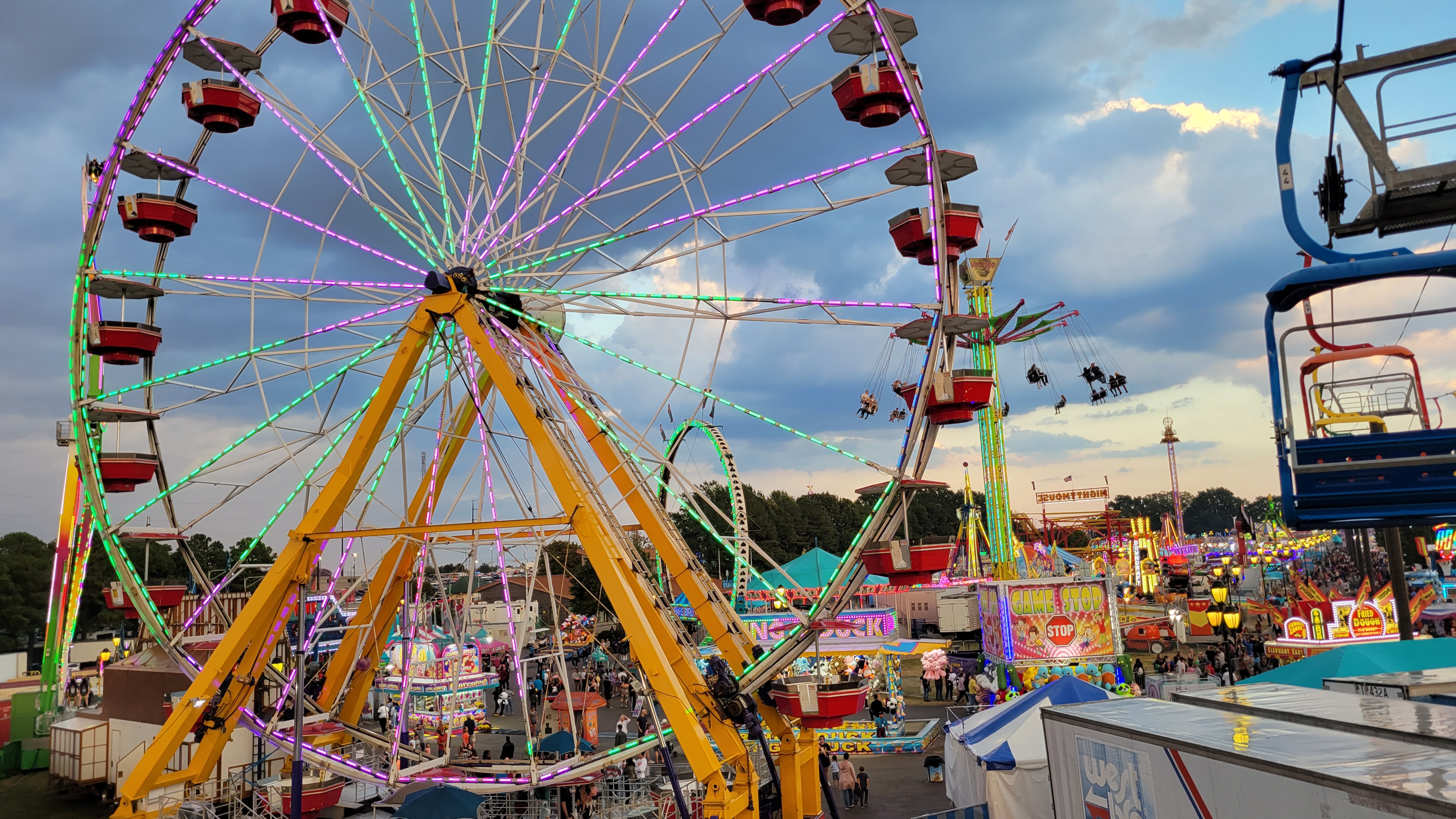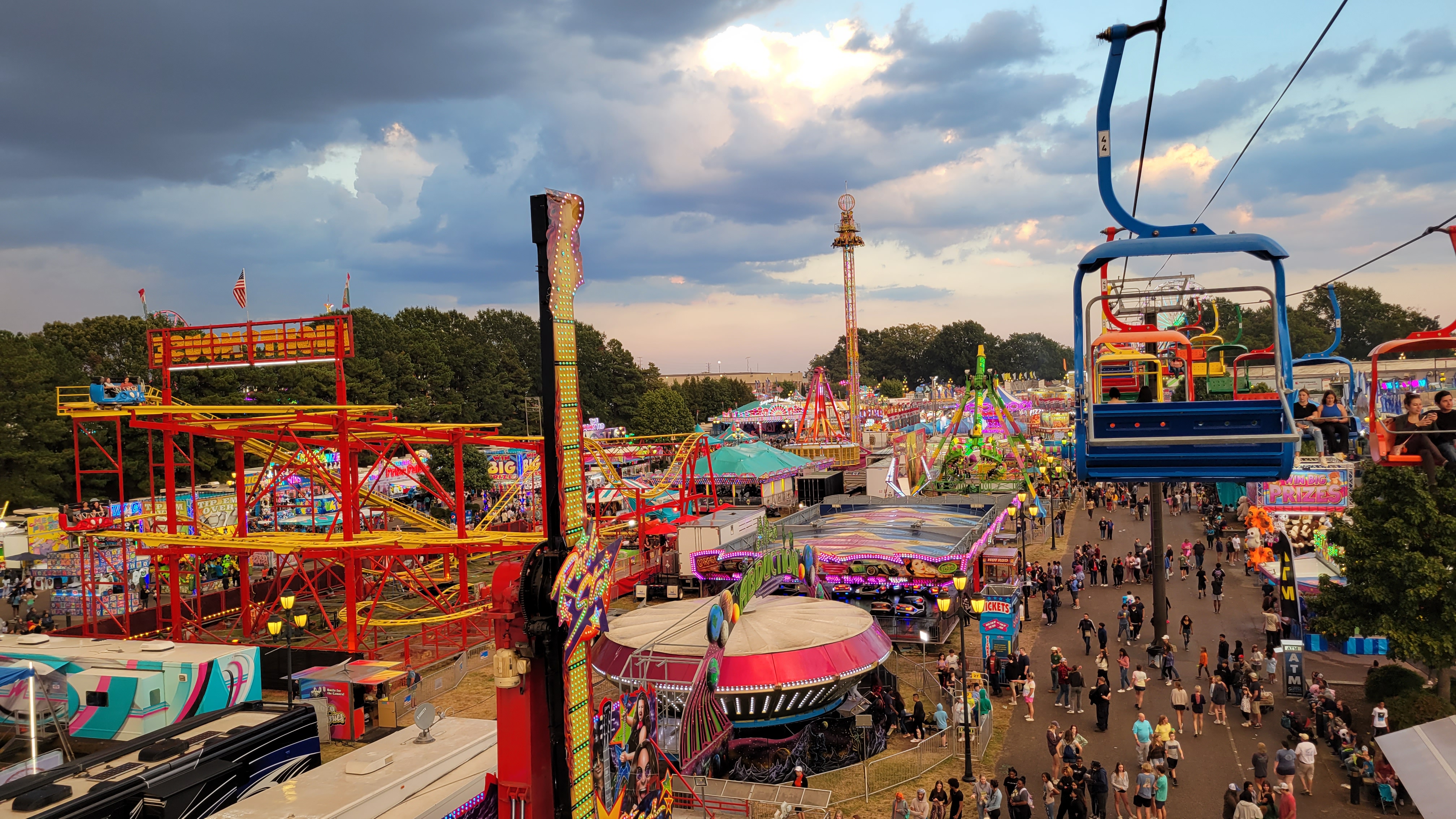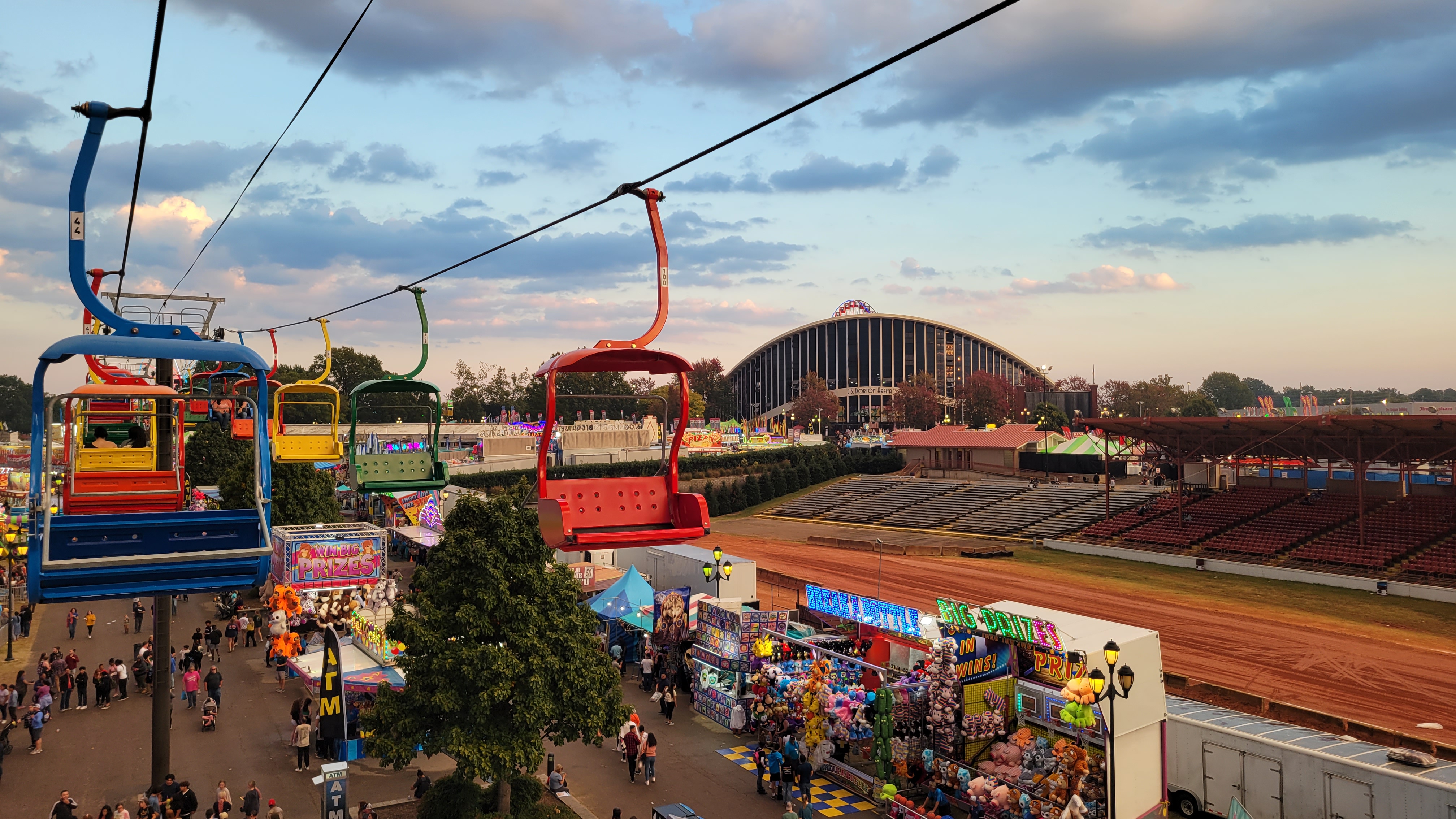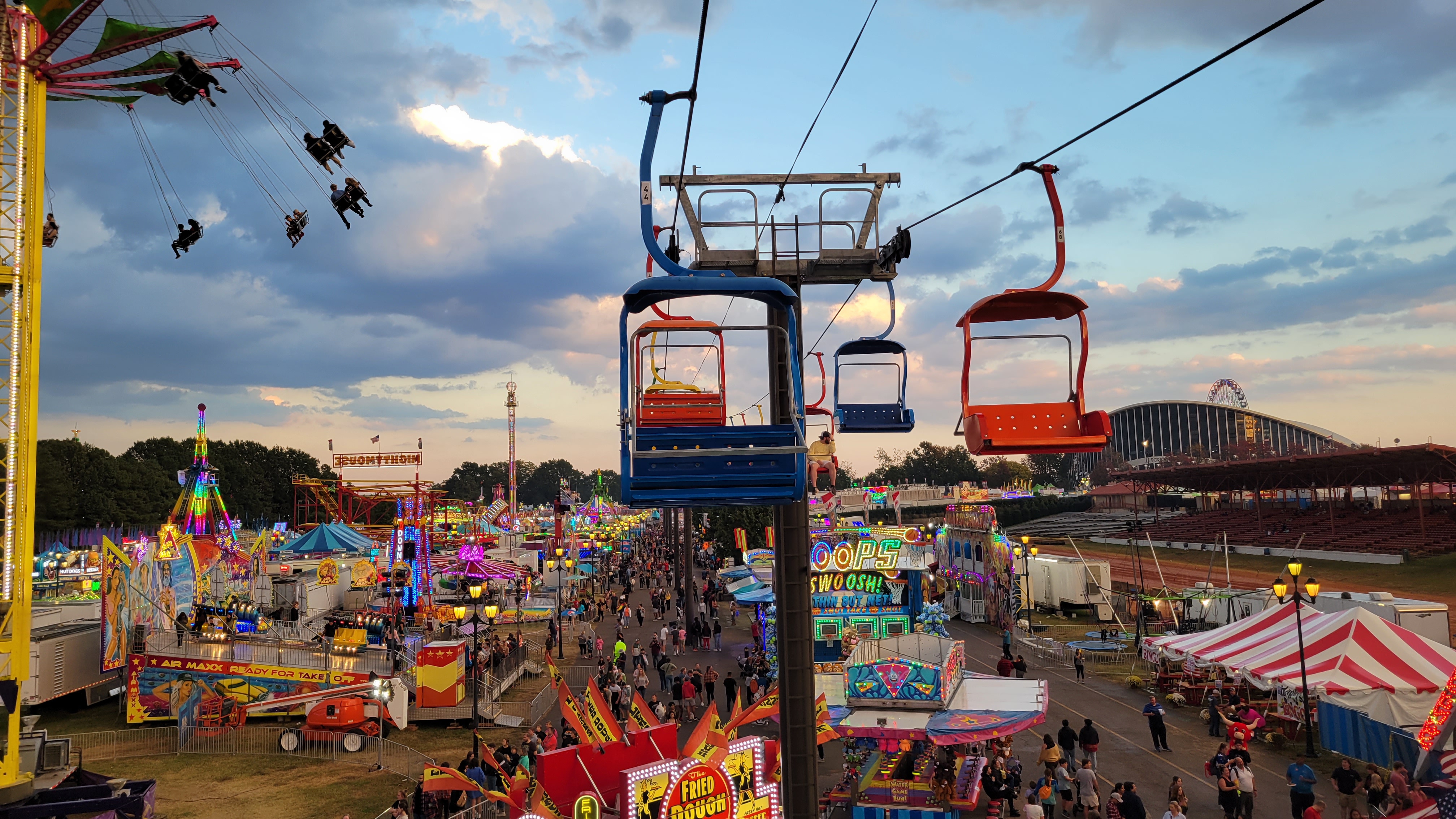 Pretezel bacon cheese corn dog! Pretzel stop #1. Ostrich Burger. Bacon everything! Himalaya! Mouse Coaster. Steve's Dog House Winning Pumpkins. Ferris Wheel (one of three) Midway Midway Midway Midway Midway Midway Sky ride with the bride... Midway Midway Midway and Dorton Arena Midway and Dorton Arena NC State Fair - 2021NC State Fair - 2023