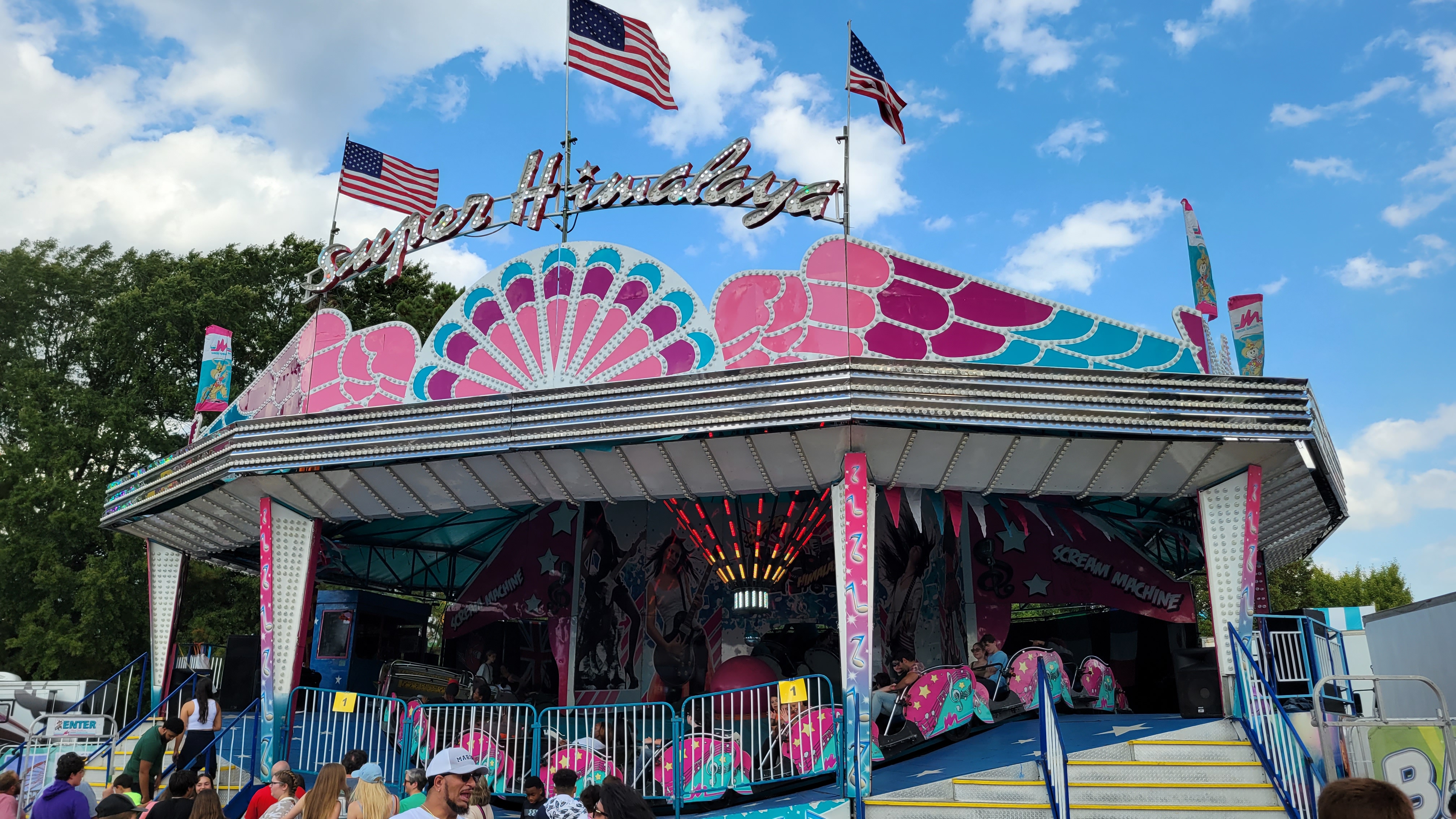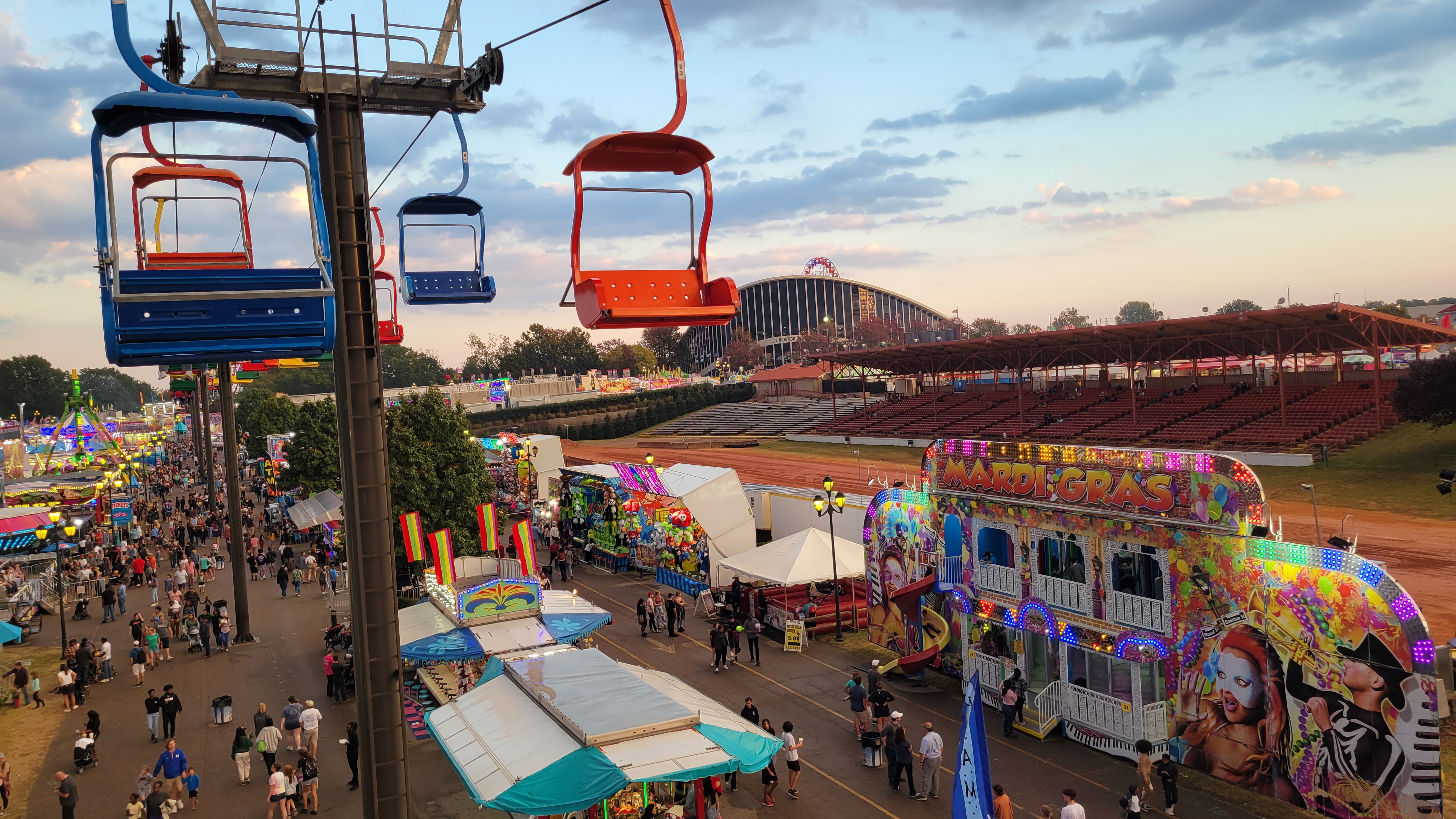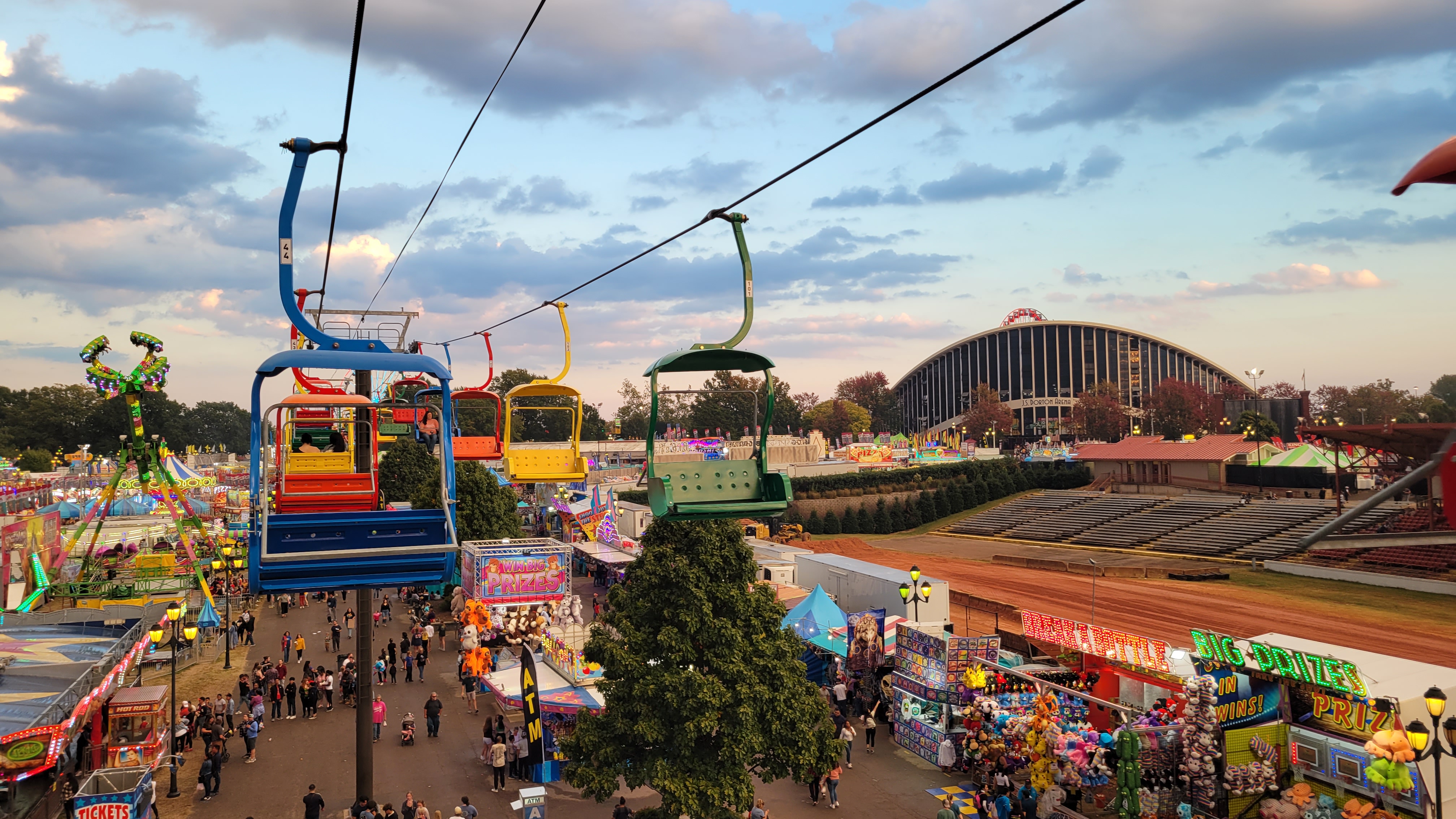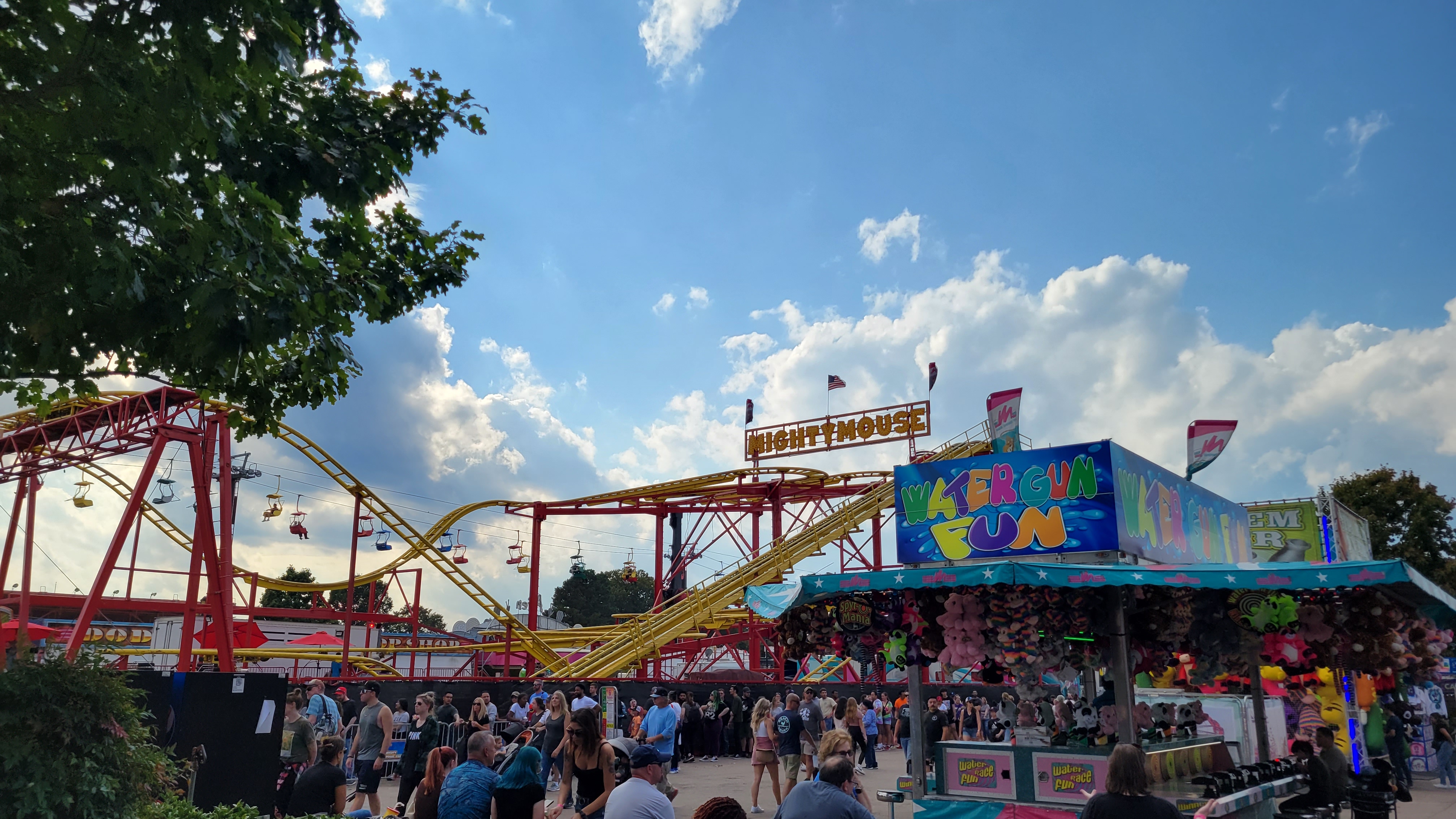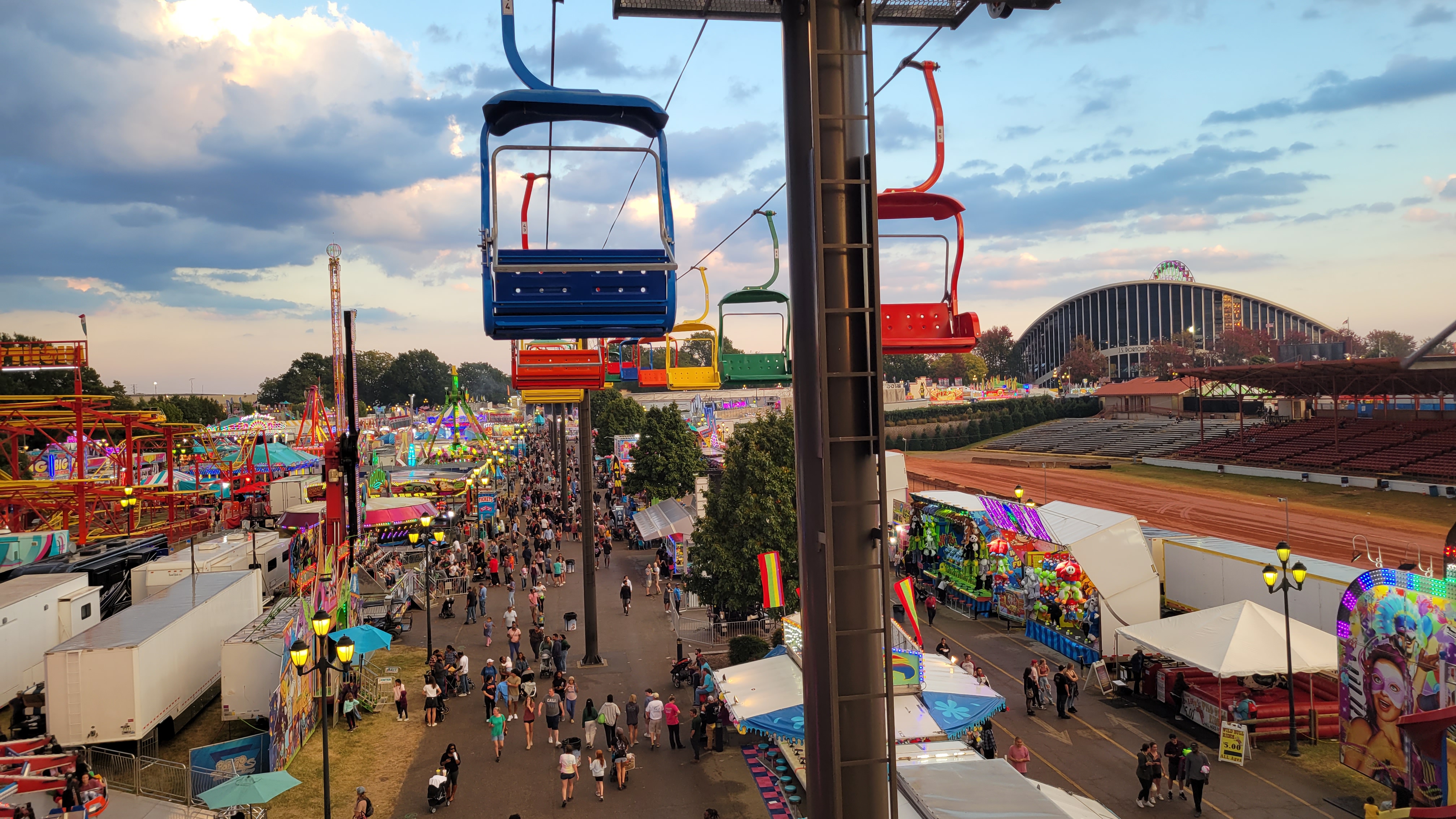 Pretezel bacon cheese corn dog! Pretzel stop #1. Ostrich Burger. Bacon everything! Himalaya! Mouse Coaster. Steve's Dog House Winning Pumpkins. Ferris Wheel (one of three) Midway Midway Midway Midway Midway Midway Sky ride with the bride... Midway Midway Midway and Dorton Arena Midway and Dorton Arena NC State Fair - 2021NC State Fair - 2023