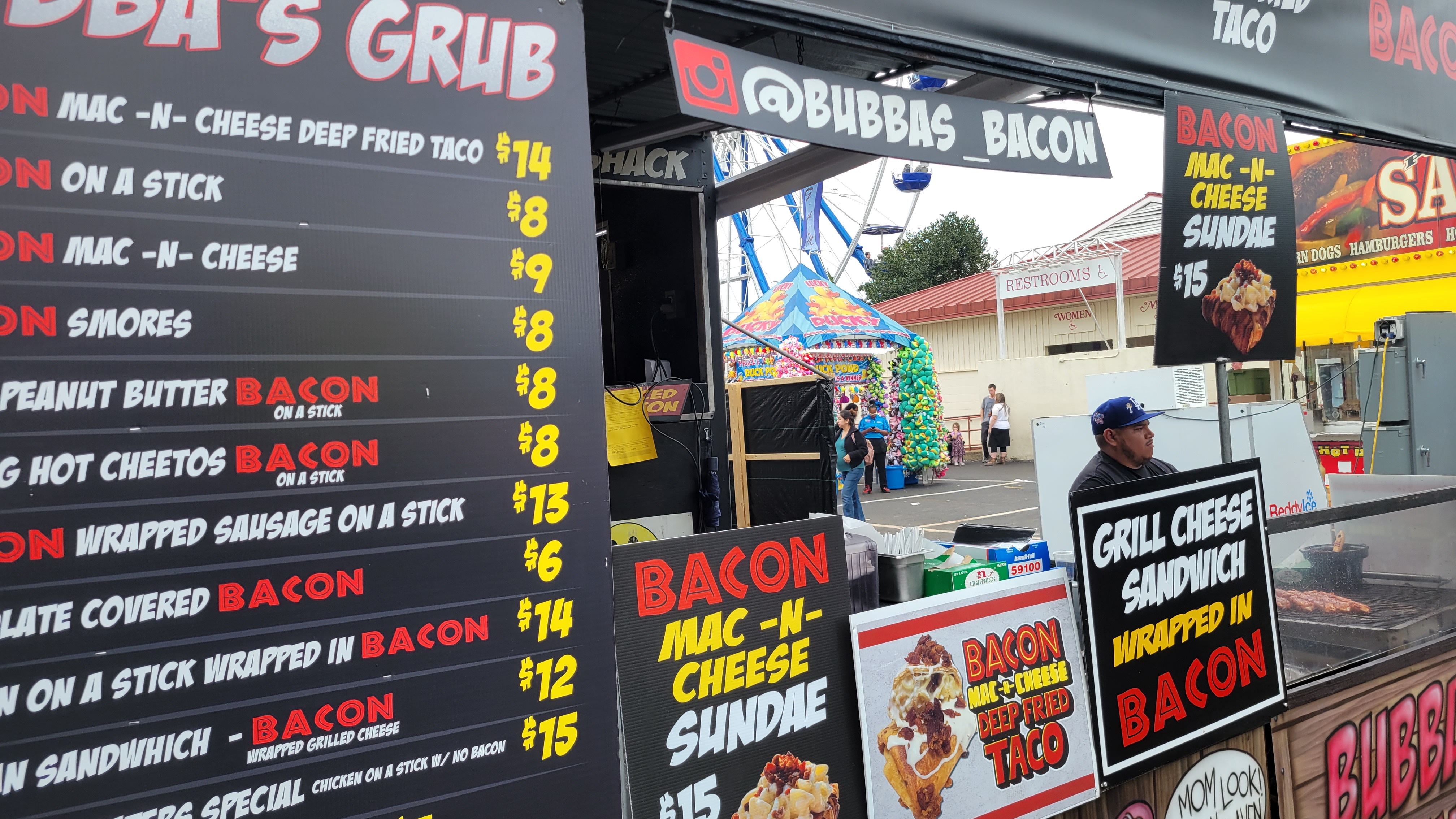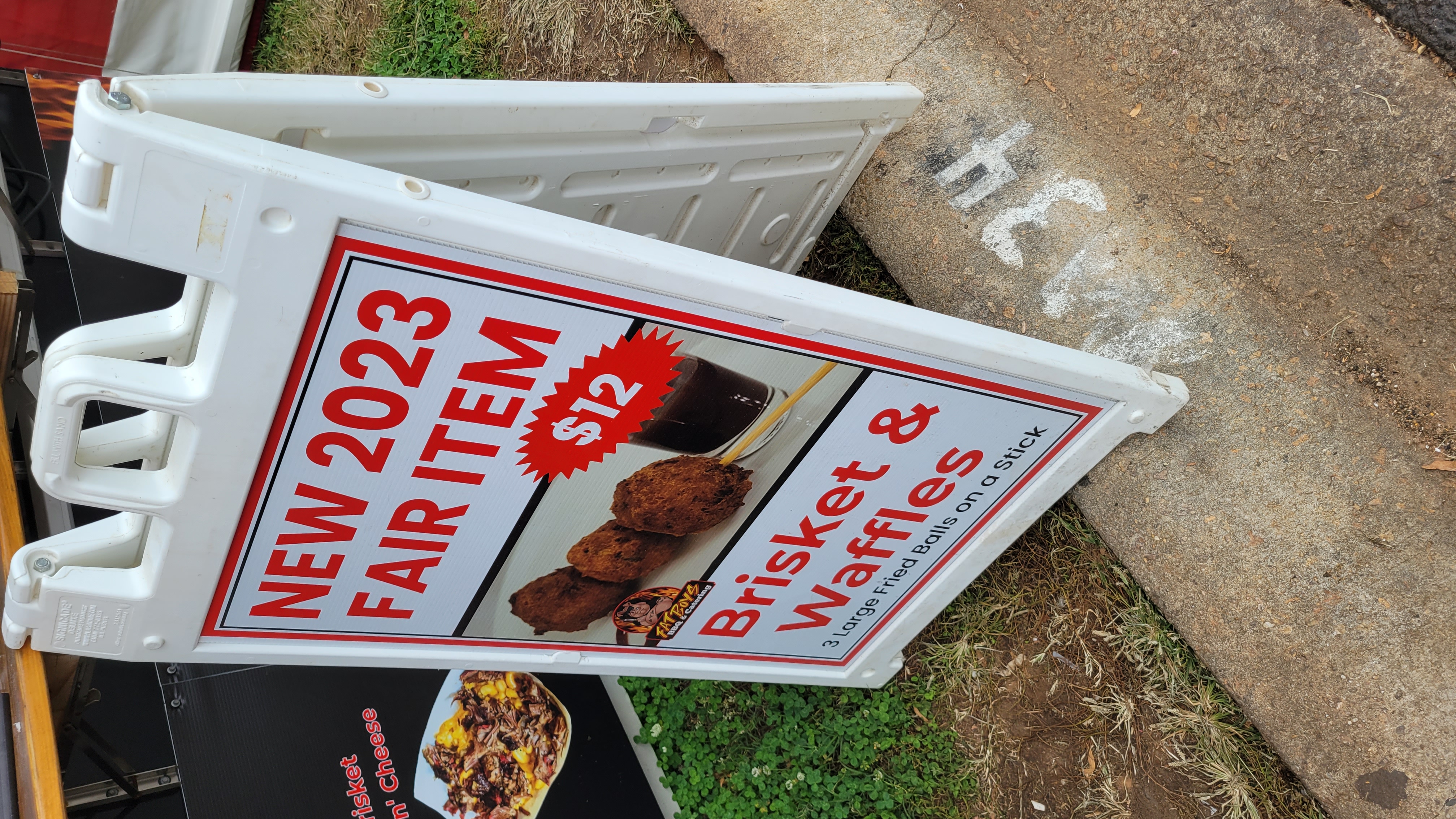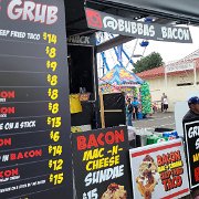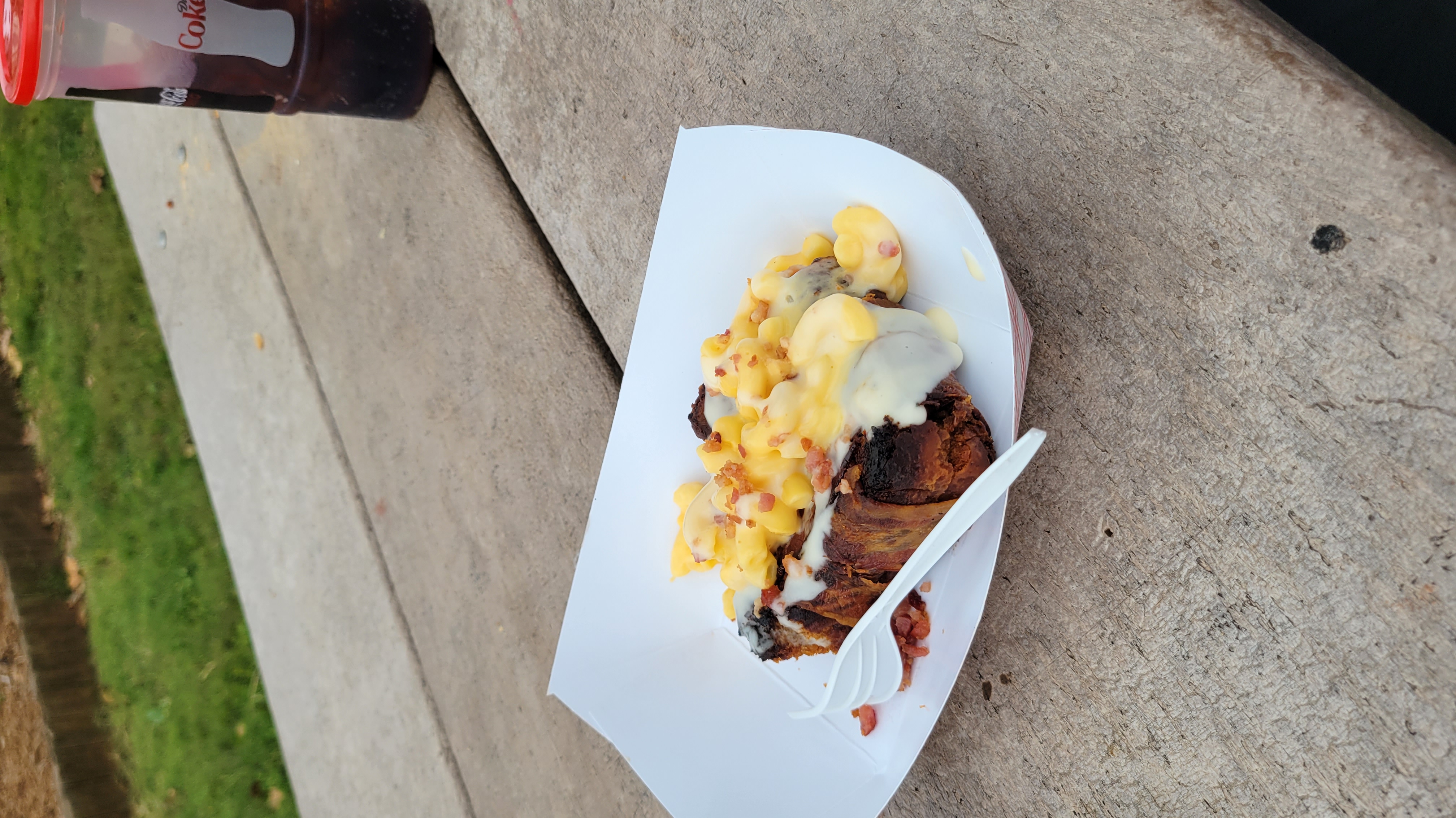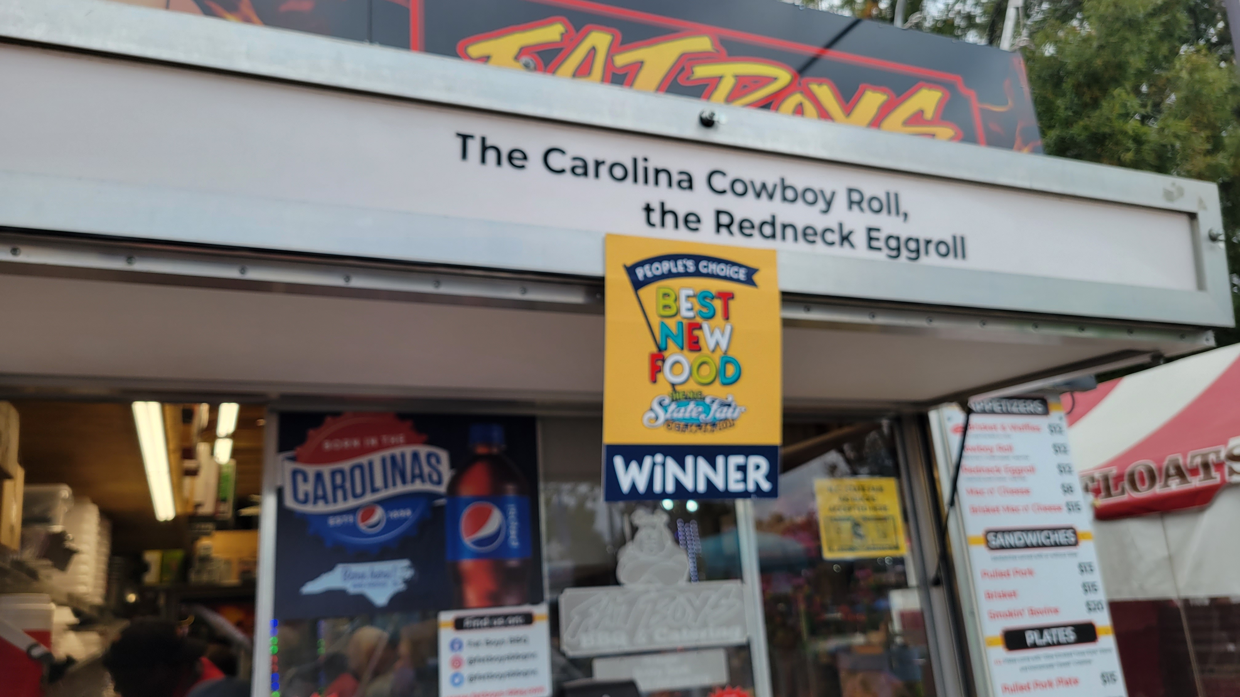 Hot. Fresh. Buttered. Huge. Pretzel for 2! Fat Boys BBQ People's Choice Winner Brisket and Waffles on a stick. With Maple syrup. The winner of the night! Brisket and Waffles on a stick. With Maple syrup. The winner of the night! She knows what's good. Yep. Awesomeness. Bubba's Bacon Bubba's Bacon Bacon Mac-N-Cheese sundae. Delicious. Grilled Cheese, wrapped in bacon ... topped/stuffed with mac-n-cheese. Deep fried Apple Pie. Getting that extra few inches on the curb ... ;) 1-Ton Pumpkin. Chesters Gators and Tators.Chees fries with fried bologna. Politician Fries. Cheese fries ... full of bologna! Waffle Chix Waffle Chix Oreo Brownie Blast. NC State Fair - 2022NC State Fair - 2025