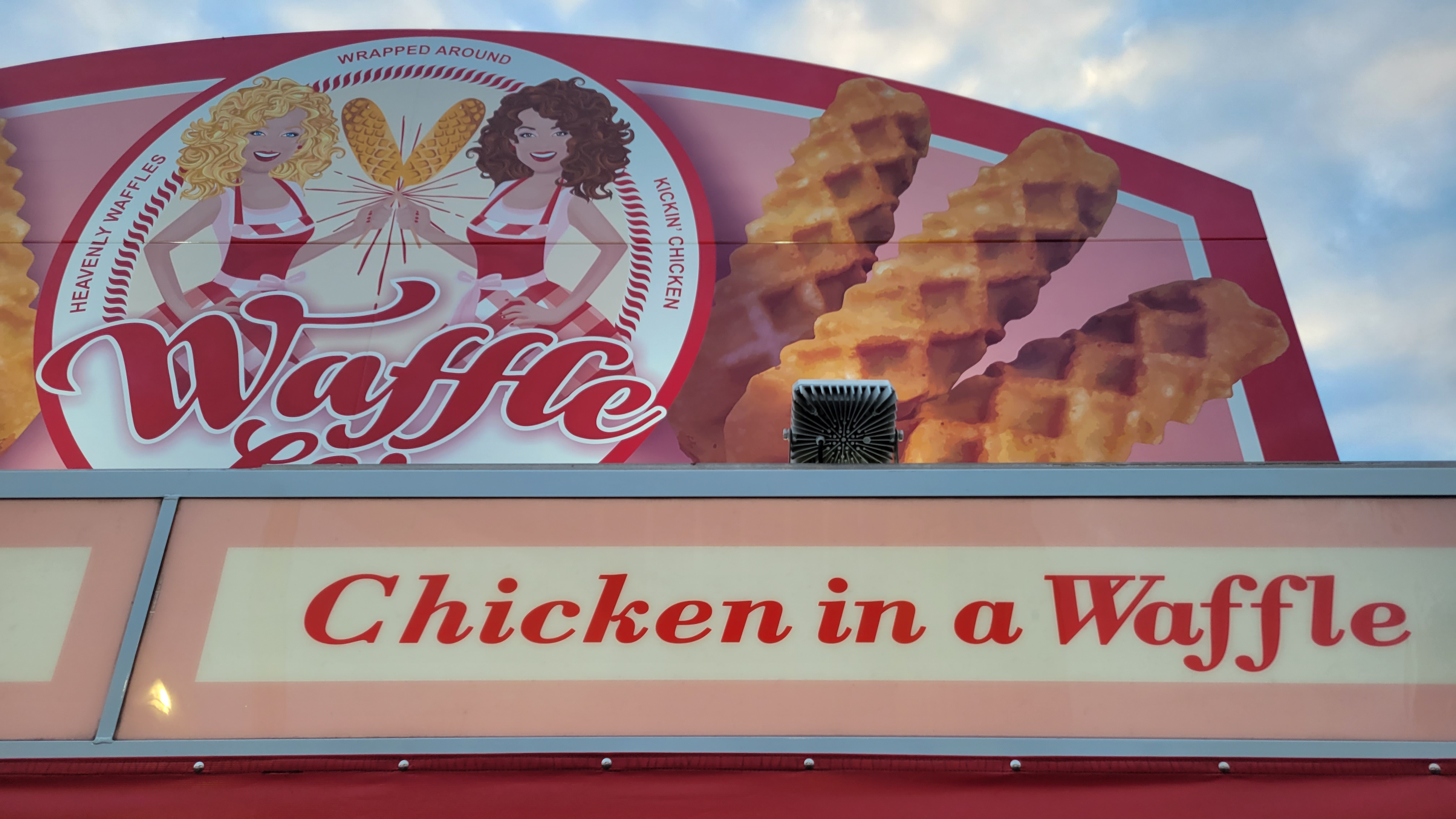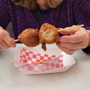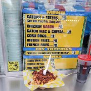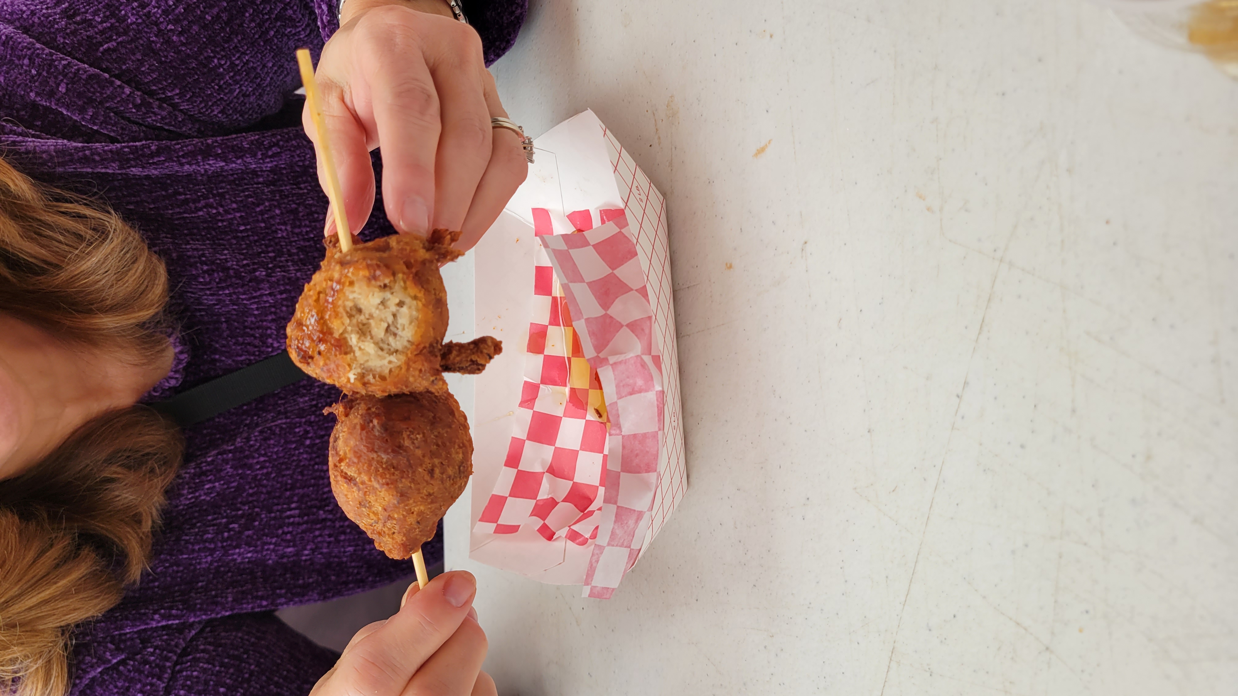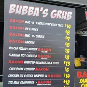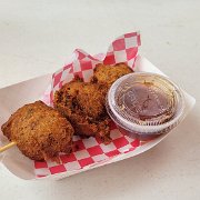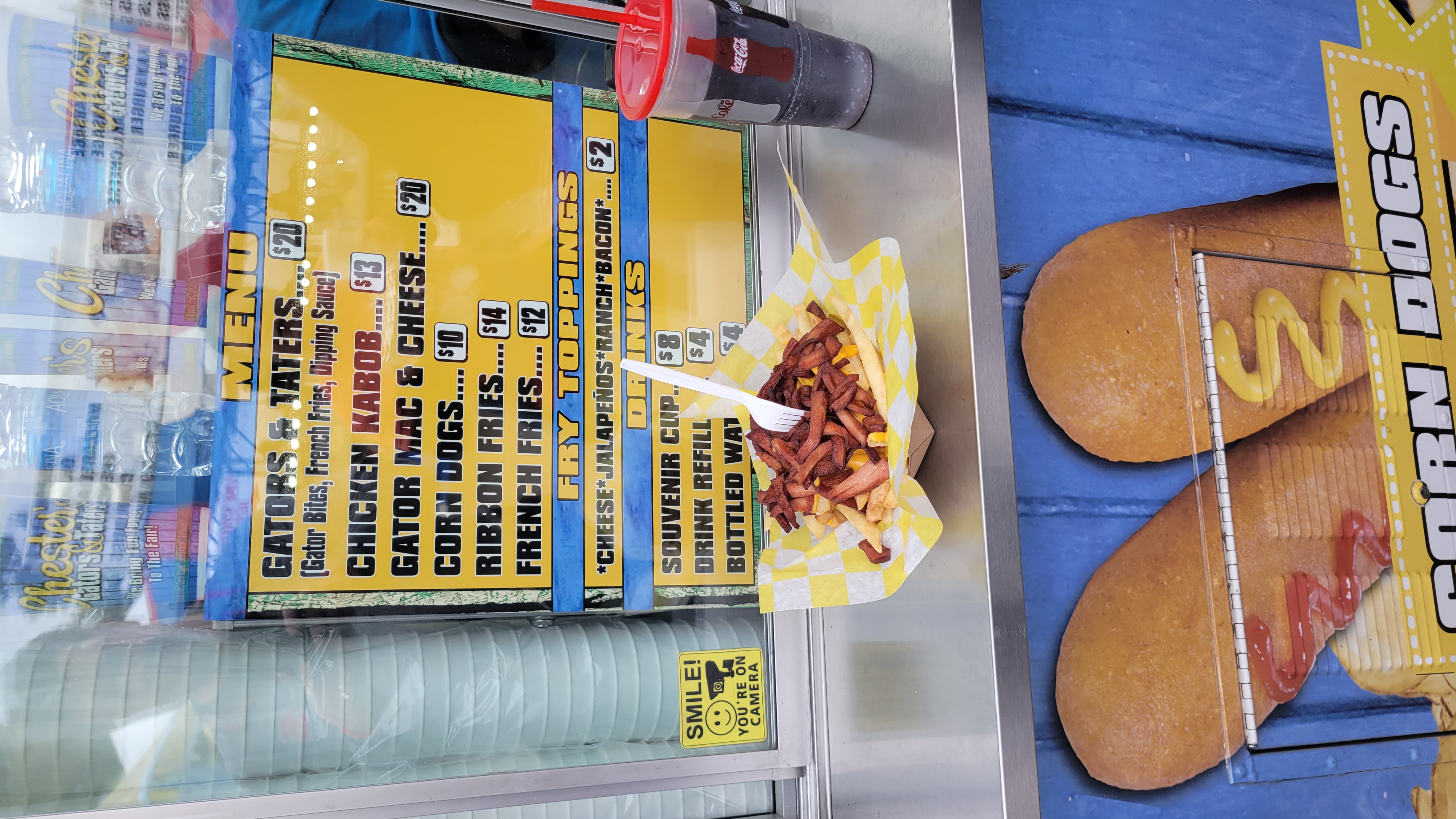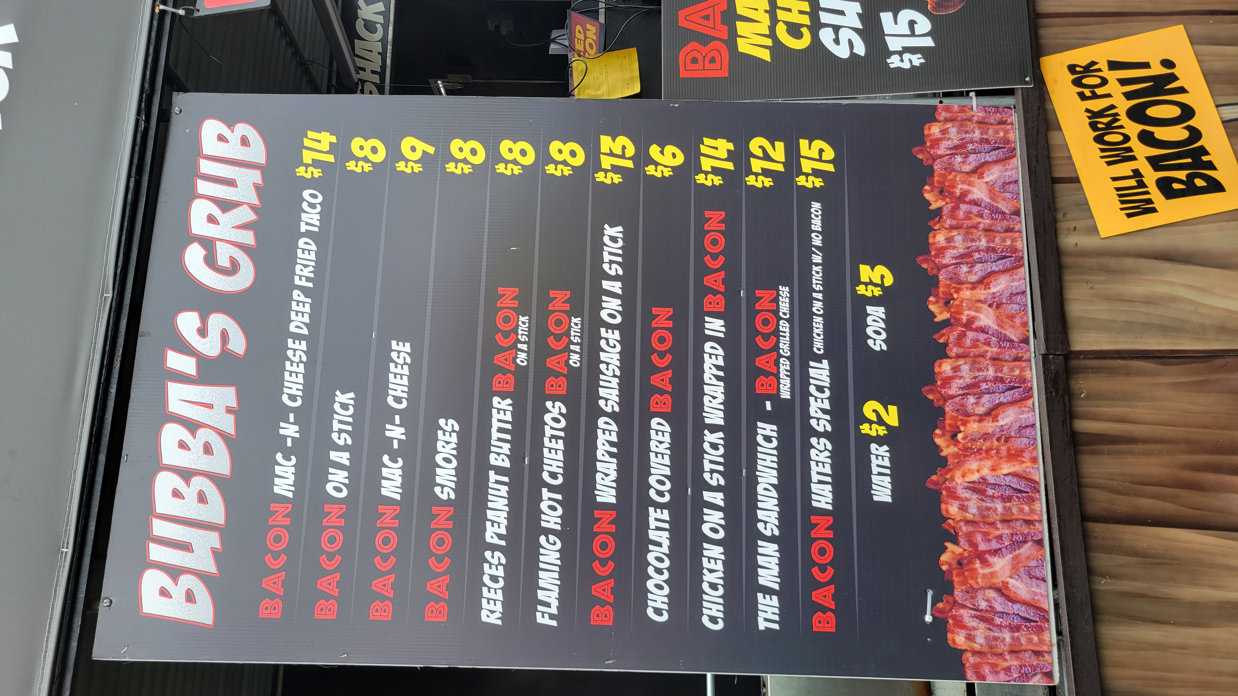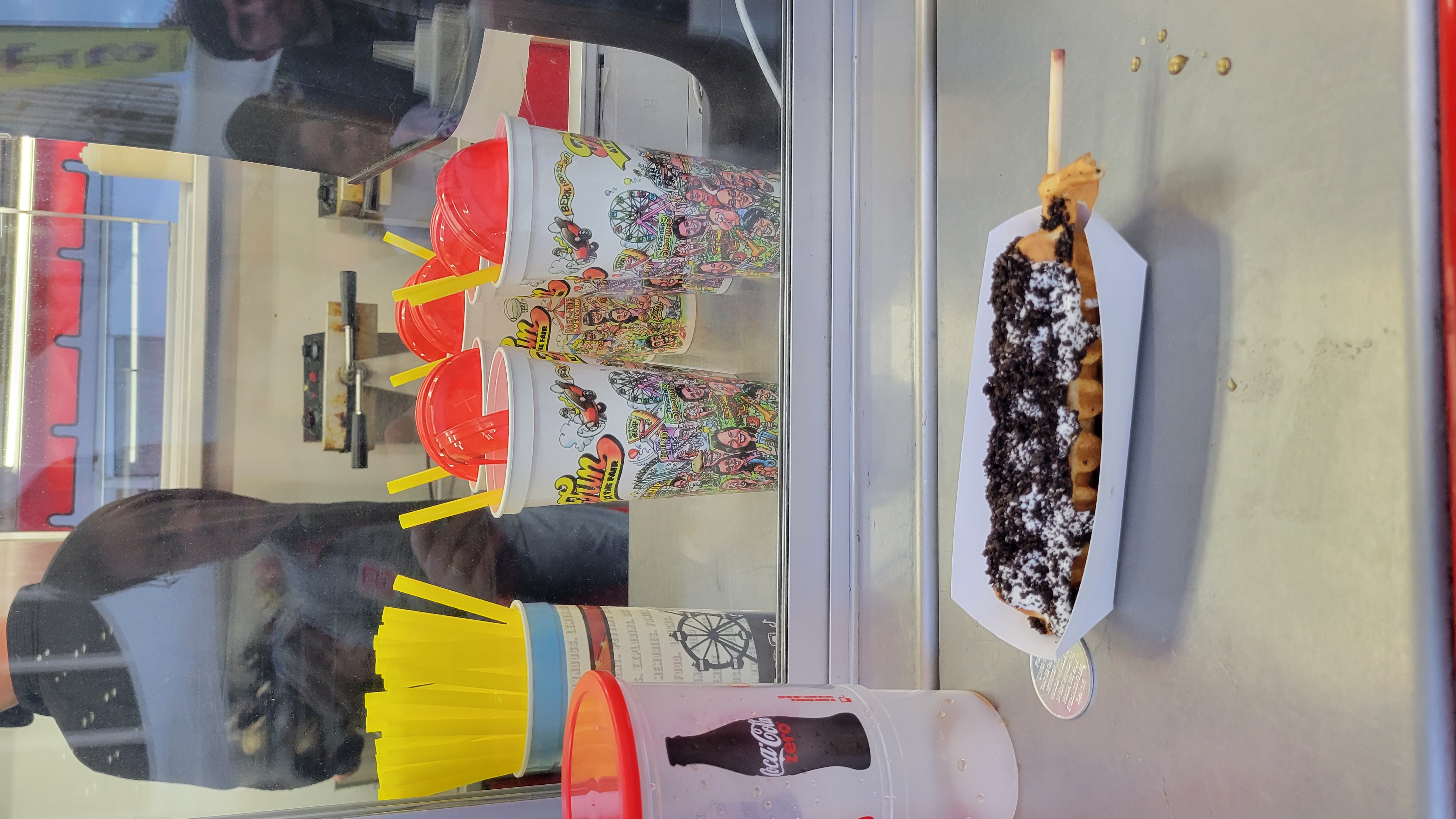 Hot. Fresh. Buttered. Huge. Pretzel for 2! Fat Boys BBQ People's Choice Winner Brisket and Waffles on a stick. With Maple syrup. The winner of the night! Brisket and Waffles on a stick. With Maple syrup. The winner of the night! She knows what's good. Yep. Awesomeness. Bubba's Bacon Bubba's Bacon Bacon Mac-N-Cheese sundae. Delicious. Grilled Cheese, wrapped in bacon ... topped/stuffed with mac-n-cheese. Deep fried Apple Pie. Getting that extra few inches on the curb ... ;) 1-Ton Pumpkin. Chesters Gators and Tators.Chees fries with fried bologna. Politician Fries. Cheese fries ... full of bologna! Waffle Chix Waffle Chix Oreo Brownie Blast. NC State Fair - 2022NC State Fair - 2025