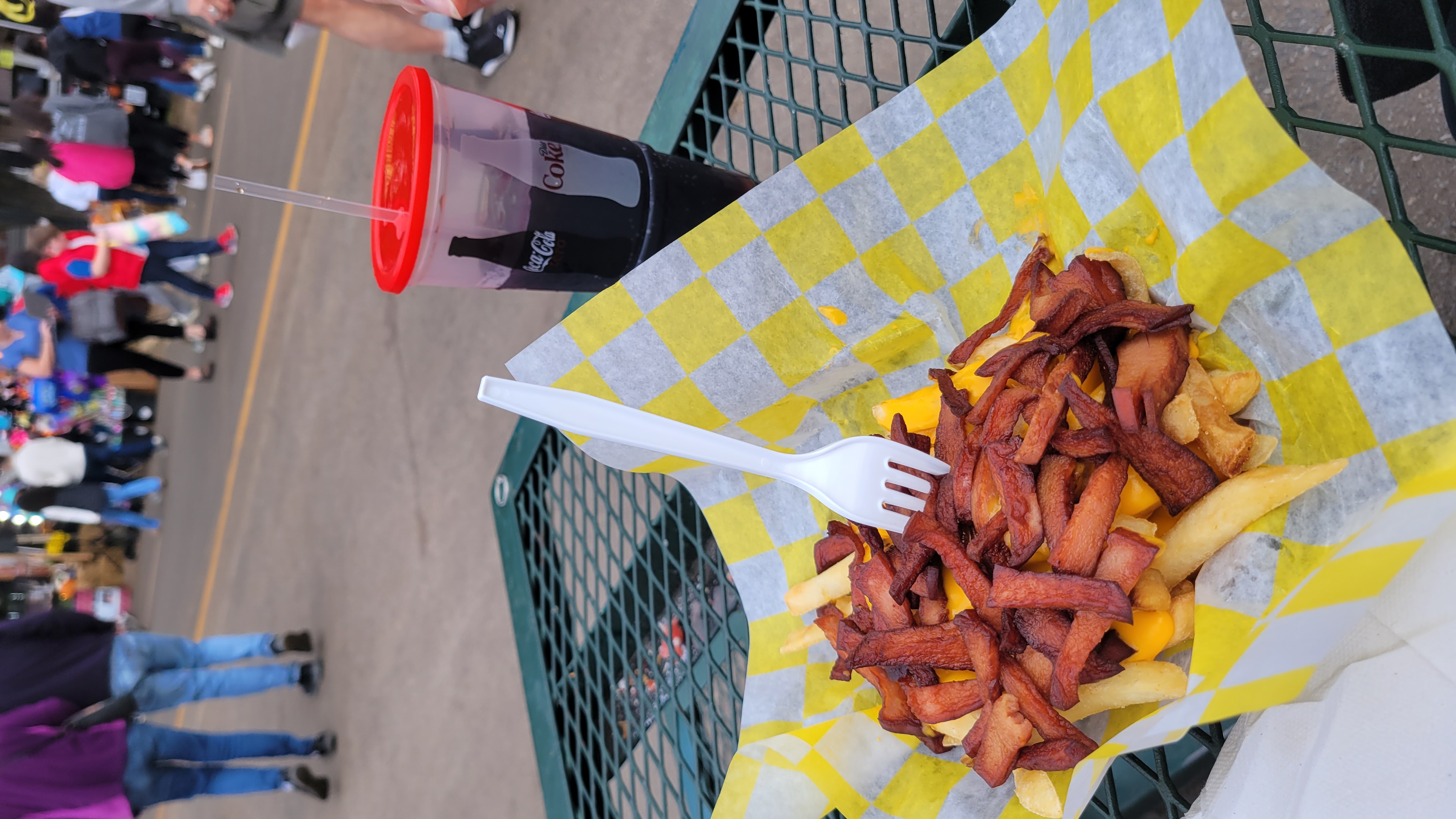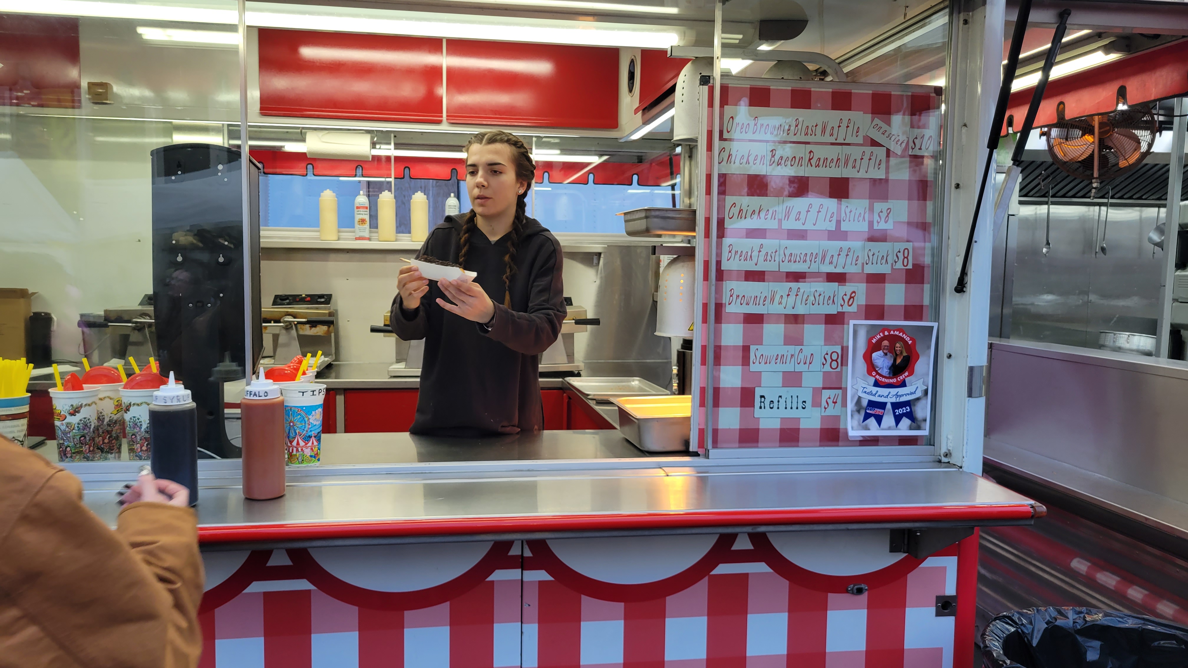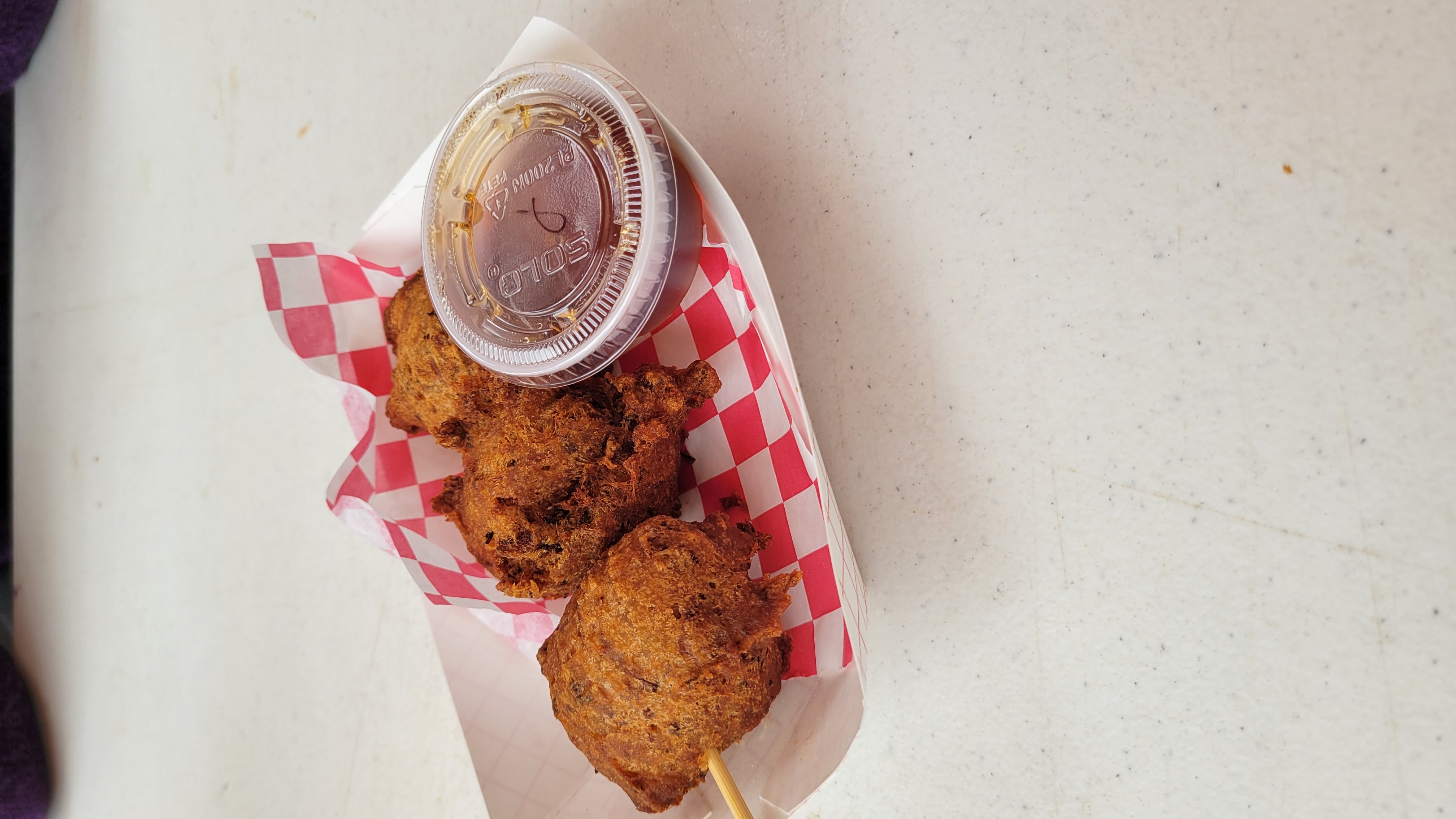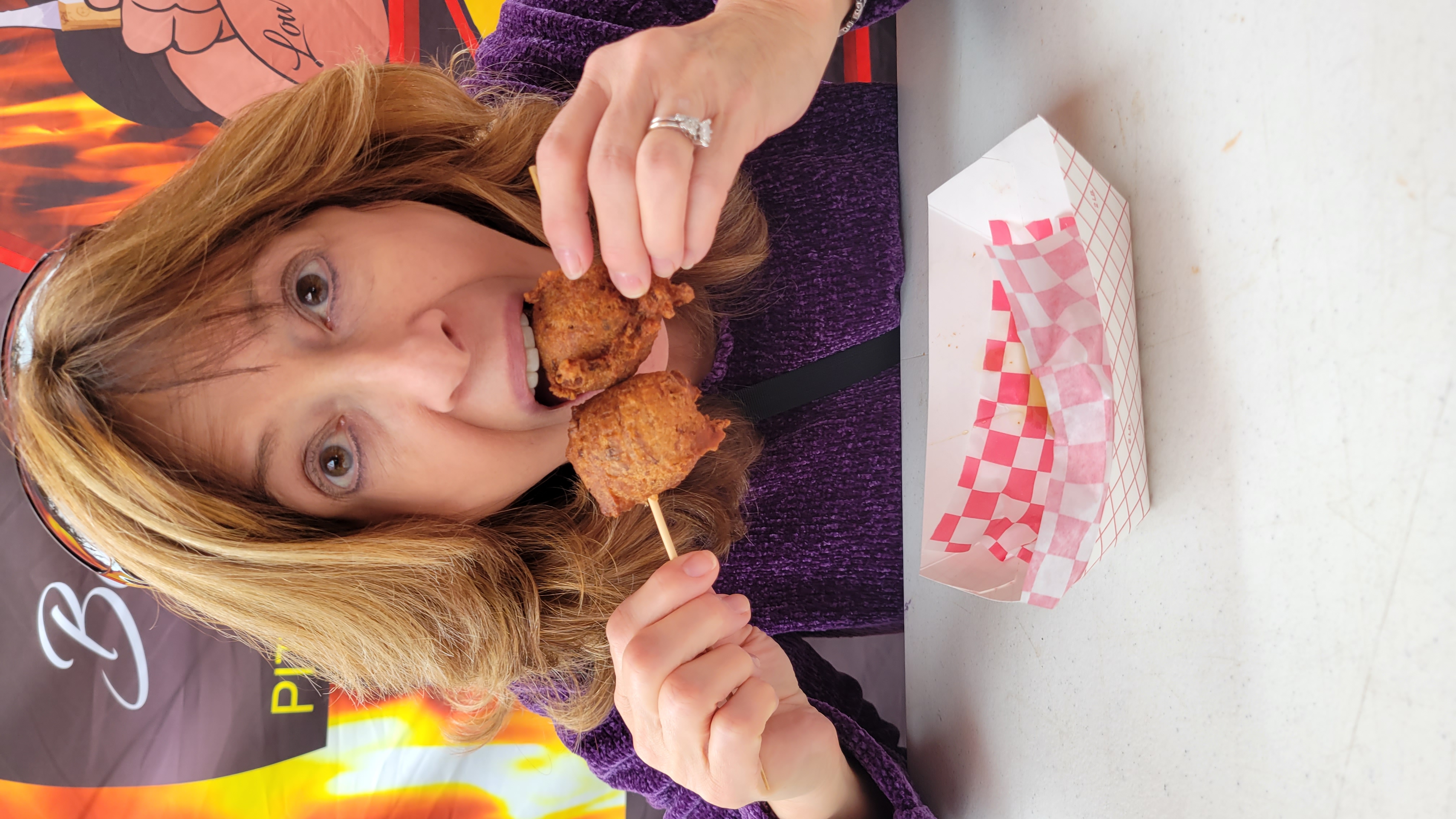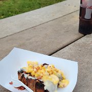 Hot. Fresh. Buttered. Huge. Pretzel for 2! Fat Boys BBQ People's Choice Winner Brisket and Waffles on a stick. With Maple syrup. The winner of the night! Brisket and Waffles on a stick. With Maple syrup. The winner of the night! She knows what's good. Yep. Awesomeness. Bubba's Bacon Bubba's Bacon Bacon Mac-N-Cheese sundae. Delicious. Grilled Cheese, wrapped in bacon ... topped/stuffed with mac-n-cheese. Deep fried Apple Pie. Getting that extra few inches on the curb ... ;) 1-Ton Pumpkin. Chesters Gators and Tators.Chees fries with fried bologna. Politician Fries. Cheese fries ... full of bologna! Waffle Chix Waffle Chix Oreo Brownie Blast. NC State Fair - 2022NC State Fair - 2025